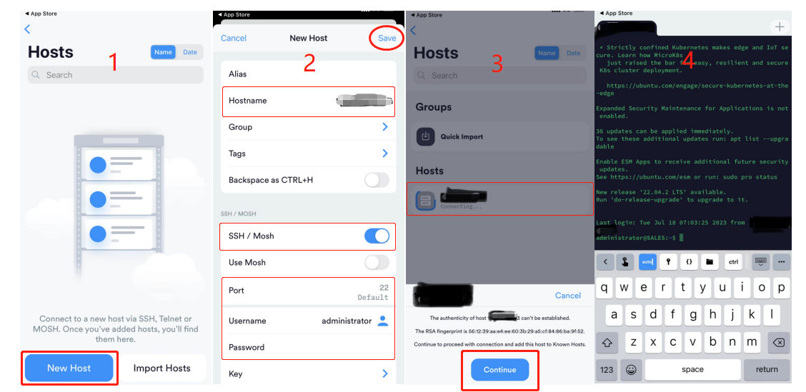 Regardless of whether you are using an iOS or Android mobile device, you can log in to the Linux servers through an SSH client, allowing you to manage your Linux servers anytime and anywhere. There are multiple SSH clients on the market for these two systems. Here we take Terminus and JuicySSH as examples.